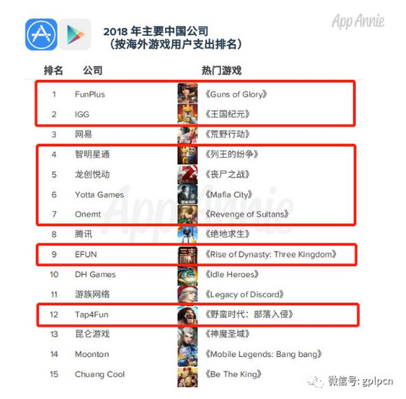 根据App Annie 发布了《2018 中国移动游戏出海报告》数据显示,2018 年国产手游在海外的下载量超过 32 亿次,同比增长 39%,收入突破 61 亿美元,同比增幅 49%。其中,点点互动(FunPlus)在海外收入 Top 15游戏公司榜单中实现登顶,这更加印证了世纪华通收购点点互动的正确性。