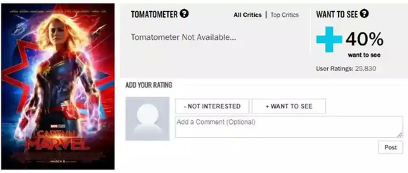 截至2月24日,《惊奇队长》在烂番茄网站上的想看度评分从96%暴跌至40%。