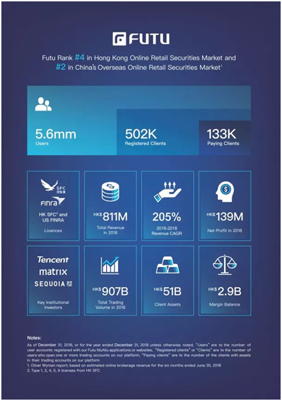 2018年,中国海外零售财富管理市场规模已达到4516亿美元,全球线上零售股票市场成交额达到27.8万亿美元。富途目前正紧抓全球在线证券交易市场的高速增长和中国投资者不断扩大海外资产配置的独特机遇。