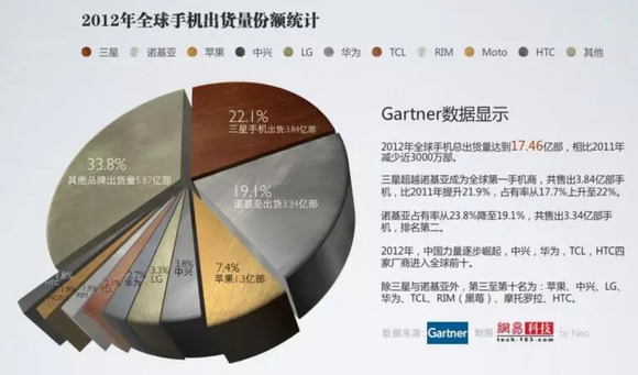 中兴终于进入到了全球智能手机出货商第四的位置,这也是中兴最高位的一次排名,华为通过努力已经进入到第六,HTC的下滑成为了整个2012年最大的科技事故,甚至被TCL超过。