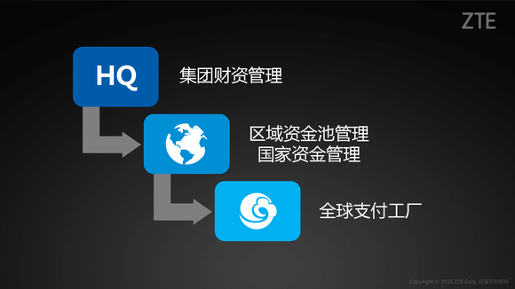 通过建立三级资金管理架构——集团财资管理、区域资金池和国家资金管理、全球资金支付工厂,使集团能够对全球的收支管理和监控,全球资金实现可视、可控、可调、可回。