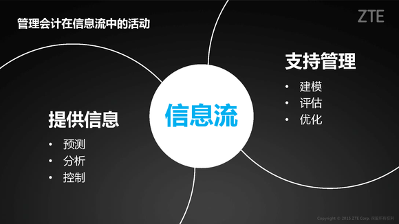 管理会计属于信息循环的重要组成部分,其最重要的两项作用是提供信息和支持管理。在信息循环中,管理会计从各项数据中识别、收集、验证各种信息并分析数据,构建价值创造模型,对现状进行评估,经过计划、执行、检查、对计划进行回顾调整并不断改善,推动企业不断优化业务流程,支持企业的管理和经营决策。
