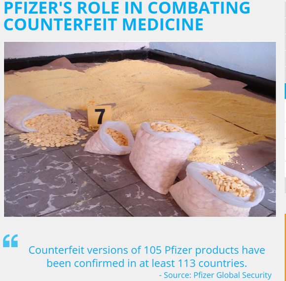 报告称,低收入和中等收入国家有高达10%的药品属于假冒伪劣,每年给当地经济造成100亿至2000亿美元的损失,且有越来越严重的势头。2018年,辉瑞在113个国家发现了95种假药,高于2008年75个国家的29种假药。