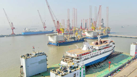 3月12日,名为“极地邮轮1号船”的首艘国产极地探险邮轮在江苏海门顺利下水。