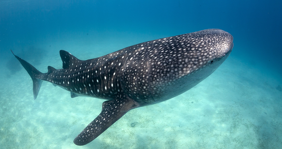 不过,这只小小的虾虎鱼可不是我千里迢迢来到这里的原因。于是我决定向岸边游去,此时已临近傍晚时分,一条体型巨大的鲸鲨正在我的上方欢快地游来游去,而这正是我此行最想见到的海洋生物之一。鲸鲨是目前世界上最大的鱼类,一条大块头的成年鲸鲨重量可达34吨,是我体重的300多倍。虾虎鱼和鲸鲨之间的体重相差8个数量级,十分惊人。除此之外,还有许多其他大型动物生存在地球上。