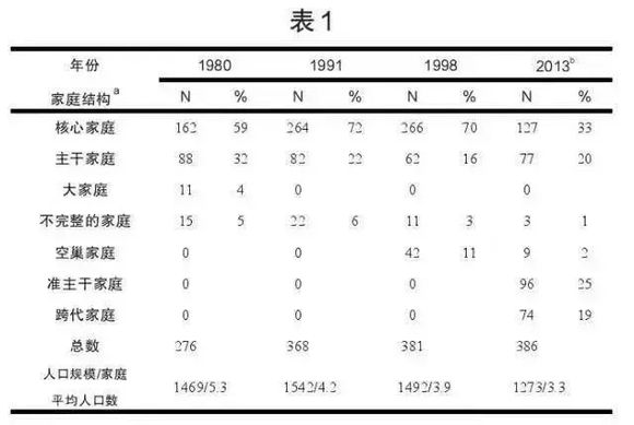 基于1980年户籍登记和我自己在1991年、1998年和2013年家庭调查的纵向数据,我在表1中总结了家庭结构的这种灵活而复杂的变化特质。其中有三点十分重要。