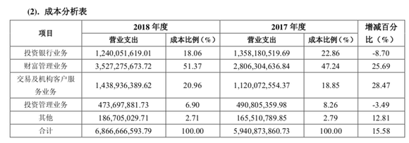 数据显示,中信建投2018年度的财富管理业务营业支出为35.3亿元,占到公司总成本超过一半,并较上年增加26%。而投行业务营业支出为12.4亿元,较上年减少9.6%。