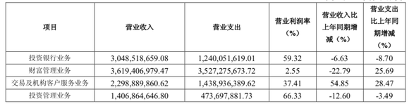 投行业务的支出缩减,营收变动不大。财富管理业务支出急剧增加,营收却大幅下滑。这家以投行业务为引擎的券商,似乎也在以强势业务反哺劣势业务。