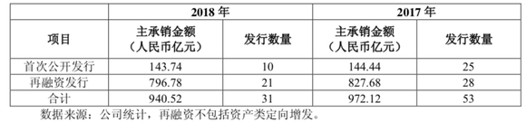 年报显示,中信建投证券投资银行业务板块2018年实现营业收入30.49亿元,同比下降6.63%。在去年审核从严、市场认购不活跃的环境下,中信建投完成股权融资项目31个,位居行业第2名;主承销金额人民币940.52亿元,位居行业第2名。其中,IPO项目10个,主承销金额人民币143.74亿元;再融资项目21个,主承销金额人民币796.78亿元。