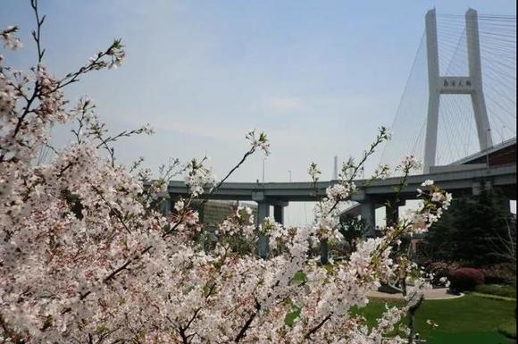 熊熊建议把南浦大桥公交枢纽站作为起点,这里也是魔都的隐藏赏樱地点之一,沿江步道铺着橡胶垫,走起来很轻松。