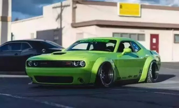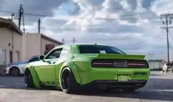 绿巨人,全美首台安装Liberty Walk包围的挑战者,通过Scat Pack经典绿颜色的喷涂增加了亲和力。