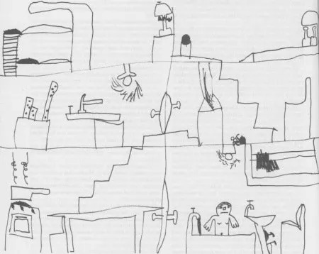 Jeremy设想了他的阁楼建筑。他的双层床位于顶层,还有一个保龄球馆。二层和一层都设有工作间,并分别配有一个厨房和浴室。