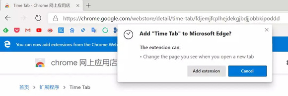 Edge对于Chrome扩展可以完全识别并且以相同的效果加载,但对于Chrome的皮肤,在安装时会显示出错。