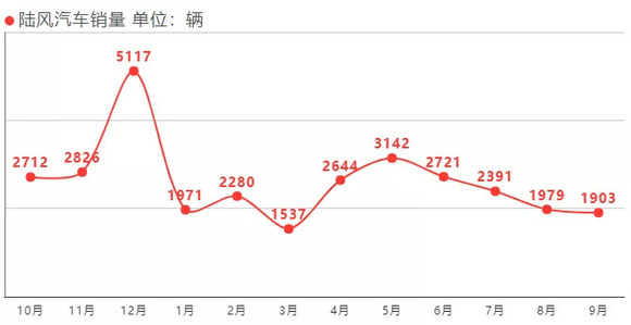 2018年,陆风X7的月均销量已不足500辆,受此拖累,陆风汽车全年销售汽车只有2.57万辆,降幅达到34%。