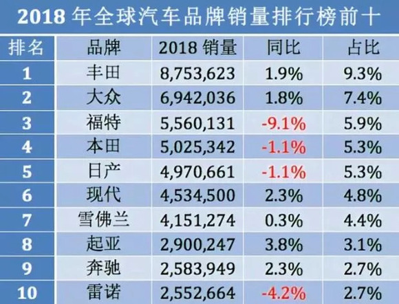 从品牌销量上看,前十大汽车品牌,没有一个中国品牌。
