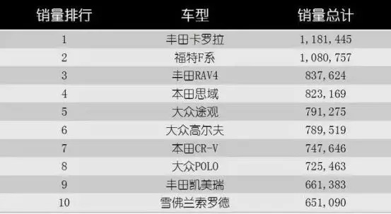 从单一车型销量看,前十大车型,没有一款中国汽车。