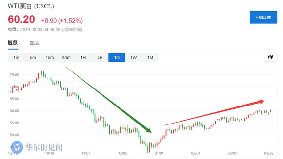 一季度最后一个交易日,WTI 5月原油期货报60.14美元/桶,第一季度累计上涨32%、创2009年第二季度以来最大单季涨幅。