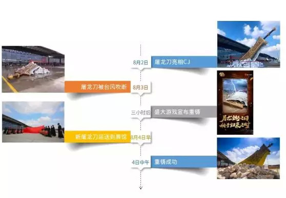 当展示的屠龙刀被台风吹断之后,盛大游戏迅速反应,在24小时之内处理并完成了屠龙刀的替换,这种操作不得不令人心服。