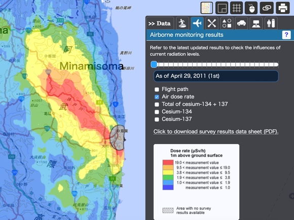 核电站爆炸后,放射性物质主要向西北方向扩散,总计面积为370平方公里的区域很快被确立为避难区域,占全县面积的2.7%。避难者分散到全国各地,福岛县在全国设立了26个交流所,与避难者保持接触沟通,提供支援服务。福岛县内的除污工作亦有条不紊地进行。受灾后,全县两年内的所有农作物收获后都进行了废弃处理,并由福岛农业综合中心主持农作物放射性物质监测,每日公布最新的监测结果。全县土地表层被削去了五厘米的厚度,建筑物表面都需经过专业人员的清洗除污。为了解除民众对核辐射造成健康问题的担忧,福岛县18岁以下的孩子均享受免费医疗服务,如果发现可能因为核辐射原因造成癌症,其治疗费用也由国家承担。所有受灾地区民众每年均能接受免费体检。
