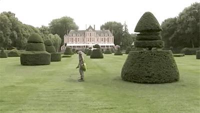 他要在家办晚宴,临时下雨把草坪下秃了几块,来不及补了,园丁就悄悄地把秃的地方喷上绿漆,因为他看到了肯定会说。