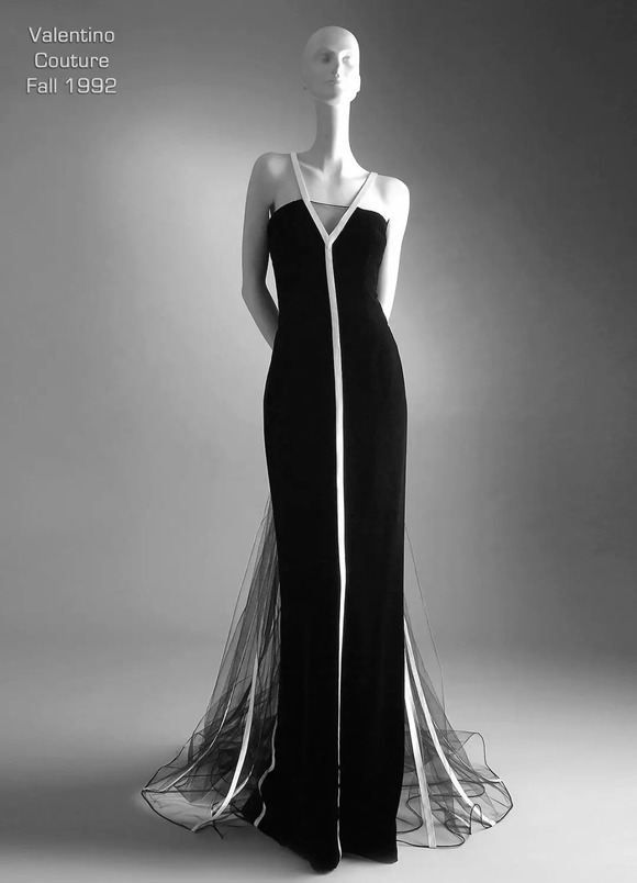 茱莉亚·罗伯茨2001年奥斯卡获奖时穿的那件有名的黑白丝绒长裙,也是Valentino的。
