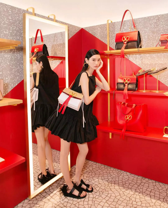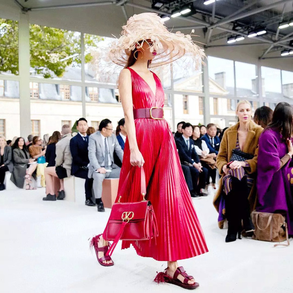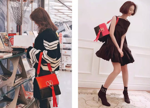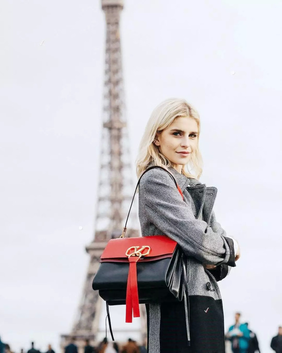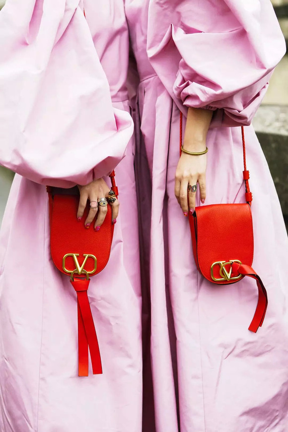 包上的红色飘带也有讲究,颜色就是人称的Valentino红。据说是由0%的蓝、100%的红、100%的黄和10%的黑调出来的。