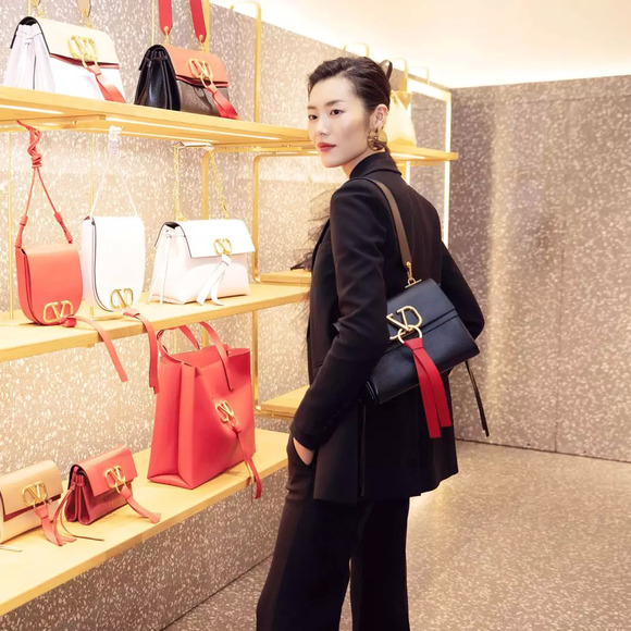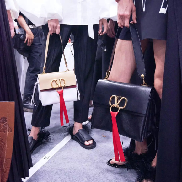 这个椭圆形中间一个V的logo,是今年开始Valentino重新启用的,灵感就来自50多年的logo。大致样子差不多,但为了附和现在的审美,改得更利落了。