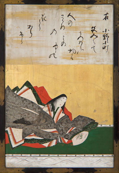 从《古今和歌集》开始,原本只是为了个人方便使用的假名开始成为正式文字进入日文系统,以假名写作的文学作品不断涌现。直到平安时代末期,敕撰和歌集的做法十分流行,先后出现《后撰集》《拾遗集》《金叶集》《词花集》《千载集》,加上镰仓时代初期的《新古今和歌集》合称为“八代集”。继汉文和汉诗之后,和歌也成为了贵族们必备的修养,诗歌被收录进敕撰会集中被视作歌人的最高荣誉。歌人中最声名显赫者当属《古今和歌集》在序文中评定的六位“和歌之仙”:在原业平、文屋康秀、喜撰法师、小野小町、大友黑主、僧正遍昭。特别值得一提的是,“六歌仙”中唯一的女性小野小町因绝世美貌和出众才华在日本有着诸多传说。纪贯之称其作“多有哀怨,缠绵悱恻,写高贵女子之苦恼”。以下为她被收录于《小仓百人一首》中的一首和歌: