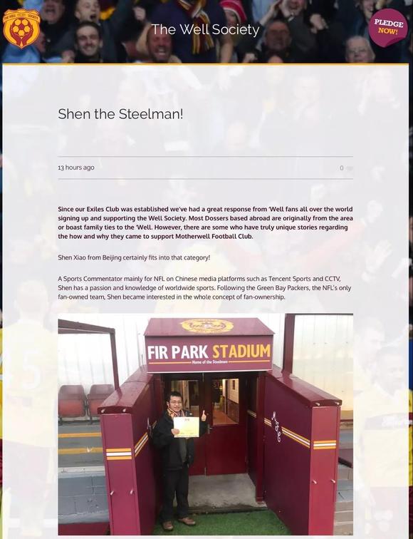 刊载在俱乐部官网上的文章截图。马瑟韦尔这座城镇曾以钢铁工业驰名英国,因此球队昵称为“Steelman”,我也因此得缘成为了一名“Steelman”