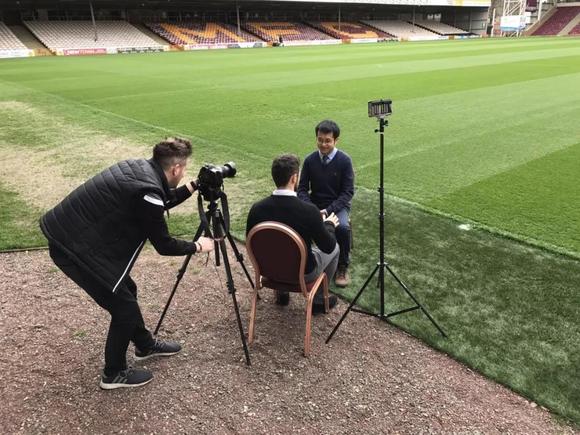 比赛日前一天,俱乐部安排的主要活动是让我接受一次视频采访。采访提问者是苏格兰当地著名电台Clyde1的主持人,他出生和居住在马瑟韦尔,从小就是球队的支持者,所以平时会义务给俱乐部做部分媒体工作。