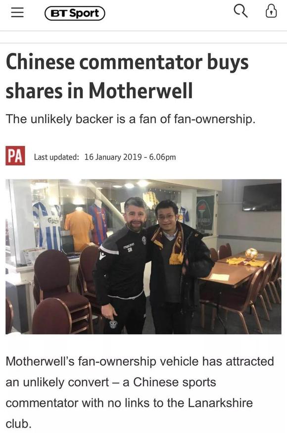 2018年底一个偶然的机会,我入股了苏格兰超级联赛马瑟韦尔俱乐部(Motherwell FC),成为这支球队近三千名股东之一。