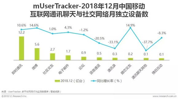 即时通讯、微博和婚恋交友类APP有着较高的同比增长,而语音通话、通讯录和通讯聊天等的月独立设备数则有着显著地下降,头部APP的功能多样化逐渐挤出一些功能单一、不可替代性弱的产品。