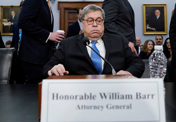 当地时间4月9日,美司法部长巴尔在众院就司法部2020年度预算出席听证会。图片来源:视觉中国
