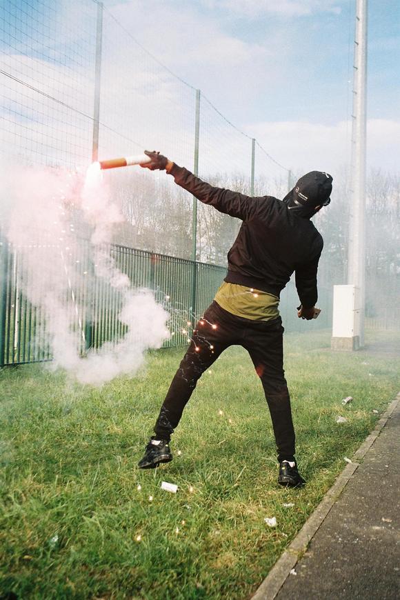 照片中,一名年轻男子背对着镜头,正在往空中抛射投掷物,看起来像是一枚炸弹。实际上,那不过是一个小型爆竹而已。“这张照片是在一场体育赛事上拍摄的,”伯纳尔说,“但它总能让我想起暴乱期间人们向警察投掷燃烧弹的情景。媒体将绝望的受害者刻画成愤怒的暴民,这是有失偏颇的。事实上,人们不过想以此传达自己的诉求:我们受够了,我们也希望能够被倾听,渴望被爱。”
