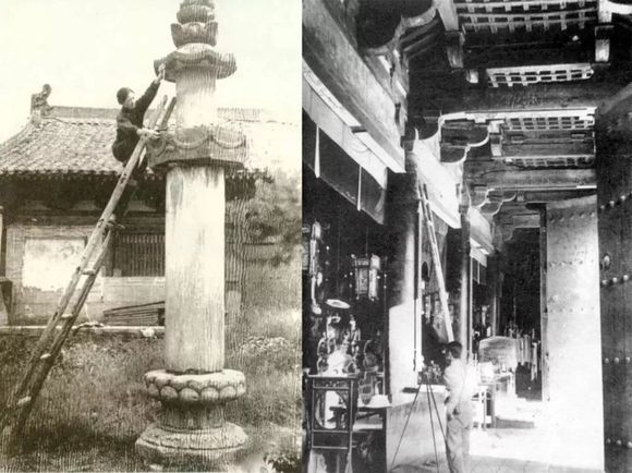 梁思成在一九三七年拍摄的东大殿外景照片,从阴影面积推算拍摄的时间应该是下午。