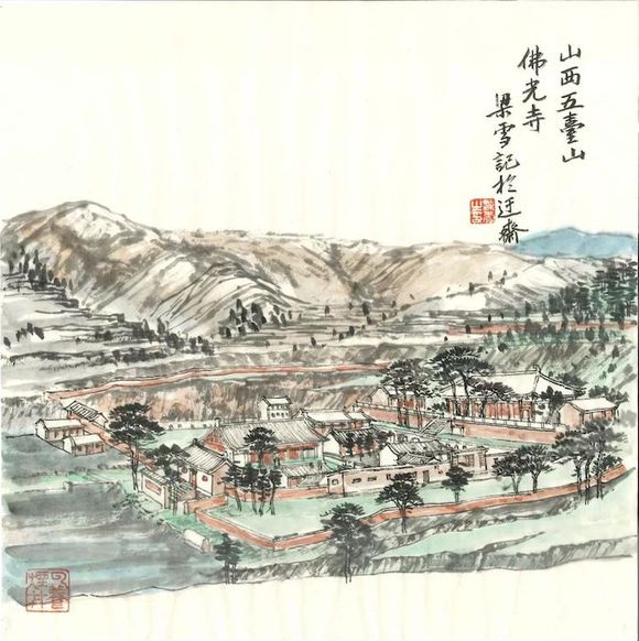 乘驼骡入山,峻路萦回,沿倚崖边,崎岖危隘,俯瞰田畴……至暮,得谒佛光真容禅寺于豆村附近,瞻仰大殿,咨嗟惊喜。国内殿宇尚有唐构之信念,一旦于此得一实证。
