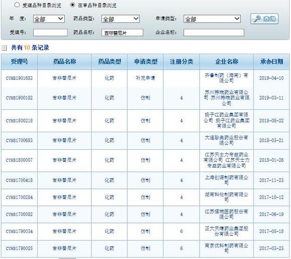 同时,齐鲁制药的吉非替尼仿制药早在2016年底获批,目前还有包括恒瑞医药、正大天晴、科伦药业、天士力、扬子江等9家企业的吉非替尼仿制药的报产申请处于审评之中。