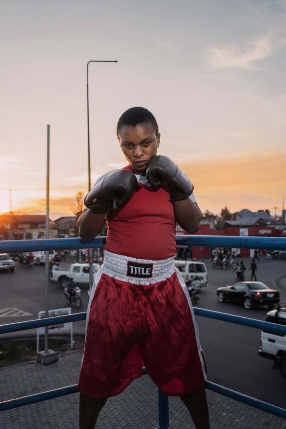 “刚果是一个父权制社会,在这样的国家里,女性很难有学习拳击的机会,因为拳击在这里通常被视作一项男性专属的运动。”摄影师格拉萨尼说。但是在刚果的东部城市戈马,越来越多的女性已经开始学习拳击,并将拳击视作捍卫她们生命安全的保障,布兰迪尼就是这个女性群体中的一员。在这个性暴力泛滥的国家里,拳击已经不仅仅是女性的一种自卫方式,更是她们彼此之间友谊和意志的源泉,以及对未来寄予的希望。