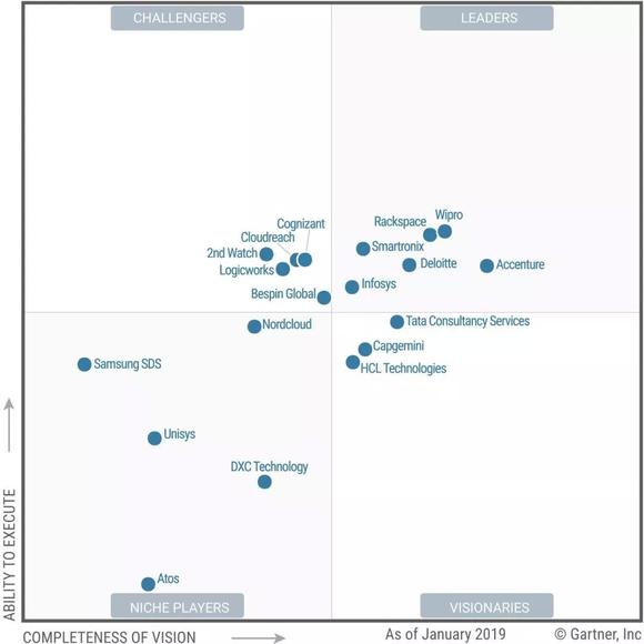 Gartner : 2019年公共云基础设施托管服务提供商(MSP)魔力象限