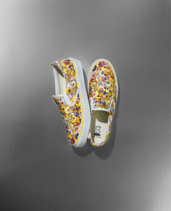 以“扁平”和“幼稚”为特色的日本当代艺术家村上隆推出了与Vans的合作款不系带休闲鞋,无论是鞋子还是滑板,都要时尚时尚最时尚。