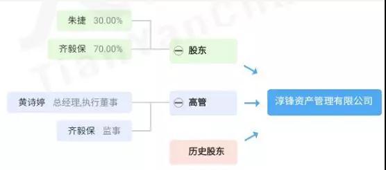 从股权关系来看,淳锋资产系朱捷、齐毅保两名自然人股东出资设立,齐毅保持70%股份,朱捷持股30%。齐毅保系广东淳锋律师事务所的主任,朱捷则为该律所的执业律师。不过,据公司员工介绍,淳锋资产只是朱捷律师在外面自己开的公司,和律所没有关系;齐毅保只是公司合伙人,是资方,不参与日常经营。