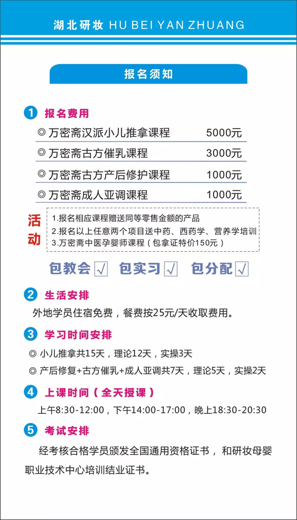 2、报名任意两个项目送中药、西药学、营养学培训。