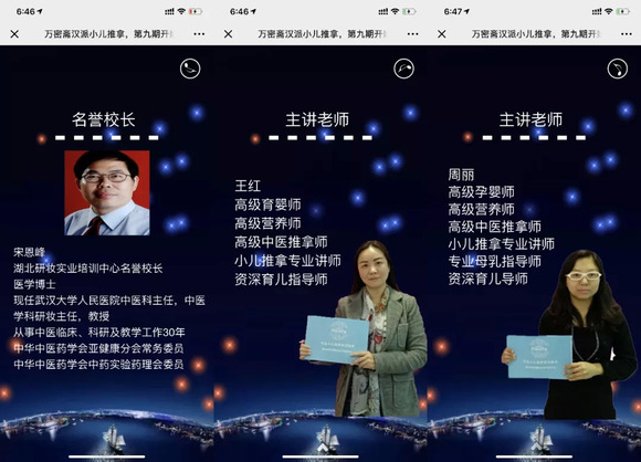 根据宣传,湖北研妆母婴职业技术培训中心的师资力量十分强大,不仅有武汉大学人民医院中医科主任宋恩峰担当名誉校长外,还有两位带着各种名头的明星级主讲老师。