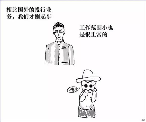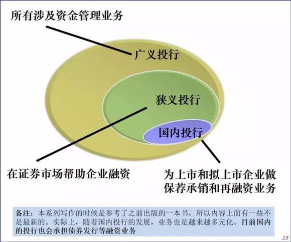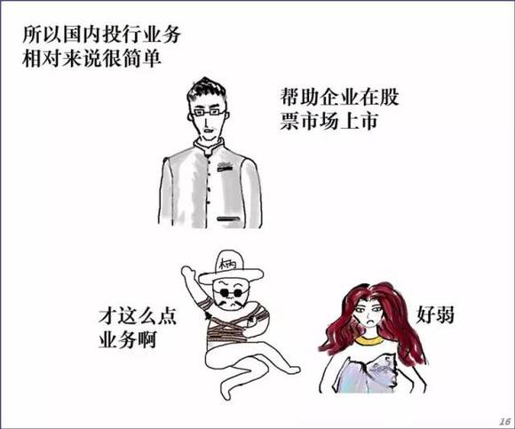 中国国内的投行业务相对来说很简单,主要帮助企业在股票市场上市,为上市和拟上市企业做保荐承销和再融资业务。