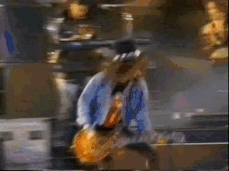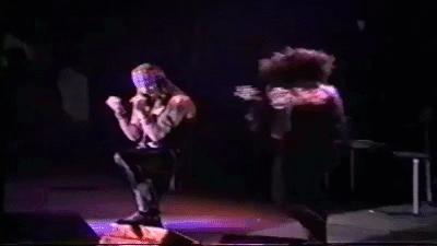 在最著名的圣路易斯演唱会上,Axl唱到一半发现有个听众在录像,直接跳下前排手撕偷拍男。
