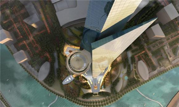 王国大厦,由AS+GG建筑事务所设计,重复利用了哈利法塔的设计方式,包括环绕周围的河流与大楼,只是规模上更大了。环绕王国大厦的建筑在20层到60层不等,因此大楼中的人也能有一个不错的视野。史密斯希望每年能有300万的游客到这里——新的地铁线路也将建起,地铁站将会由诺曼·福斯特(Norman Foster)设计。