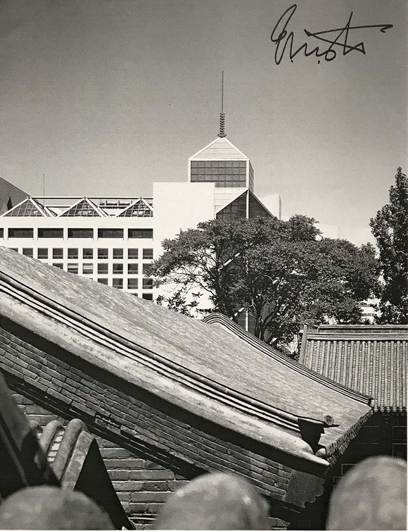 按:1999年6月,贝聿铭与著名建筑和文物专家吴良镛、周干峙、张开济、华揽洪、郑孝燮、罗哲文、阮仪三联名向北京市政府提交意见书《在急速发展中要审慎地保护北京历史文化名城》,指出北京旧城最杰出之处就在于它是一个完整的有计划的整体,因此,对北京旧城的保护也要着眼于整体。应该顺应历史文化名城保护与发展的客观规律,对北京旧城进行积极的、慎重的保护与改善,而不是“加速改造”。应尽快着手从旧城的整体出发研究北京历史文化名城的保护问题,使旧城保护与整治、历史文化区保护和文物保护这三个互相关联的层次形成一个整体。在此基础上,制定具体的保护政策和措施,编订具有法律效力的完整的《北京历史文化名城保护规划》。1994年至2001年,贝聿铭指导儿子贝建中、贝礼中设计位于北京西单的中国银行总部大厦,往返于北京与纽约之间。
