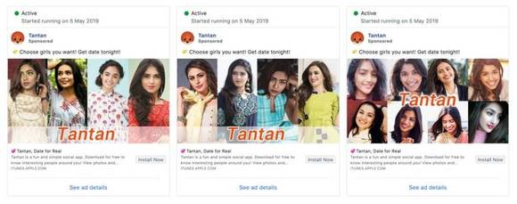 探探还在其他社交媒体平台(如Facebook)上投放广告。Facebook的广告库显示,该公司最近的大部分营销目标是男性。这与印度在线交友行业的大趋势形成了鲜明对比,因为总的来说,在线交友行业的困境在于男性用户众多,而女性用户却少得可怜。