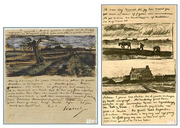 梵高为了完成一幅油画,在手稿上下了很深的功夫,为了达到了想要的艺术效果,对于一个场景在不同时间段的变化进行着不同的描绘。他通过大量的手稿练习,逐渐形成了自己风格,这也为他的以后的绘画道路凝聚了力量。