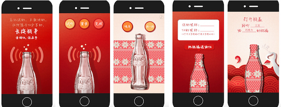 今年的情人节期间,环时找到了国内一个做语音处理团队,为可口可乐开发了一个“语音瓶”H5——“打开”瓶盖启动录音,长按瓶身开始录音,最后再把装满录音的瓶子发给你爱的人。